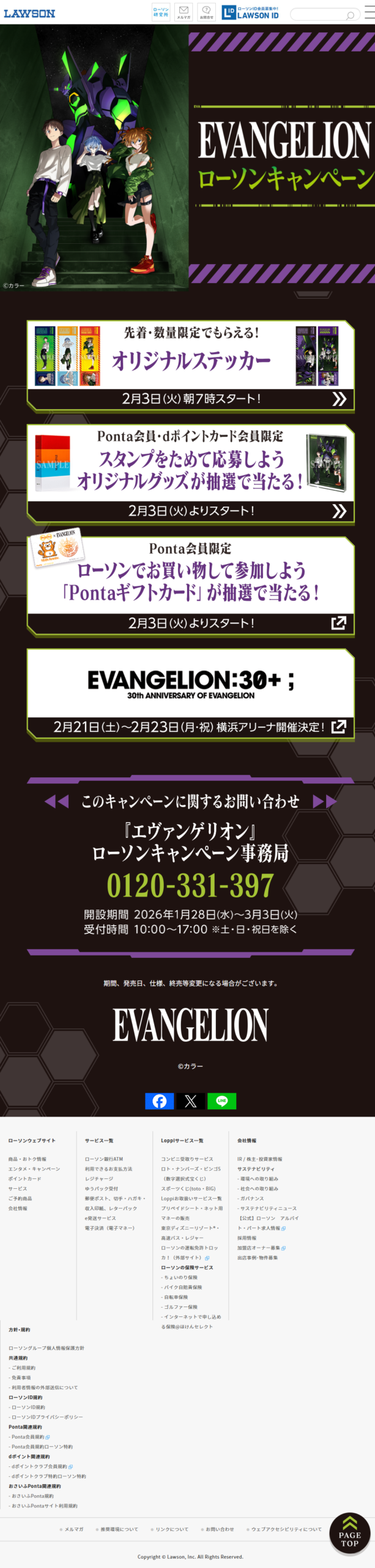 ローソン 『エヴァンゲリオン』ローソンキャンペーン オリジナルグッズを手に入れよう! ローソン X Facebook はてブ Pocket LINE コピー 2026.02.04 otoku-family.site/archives/1198/