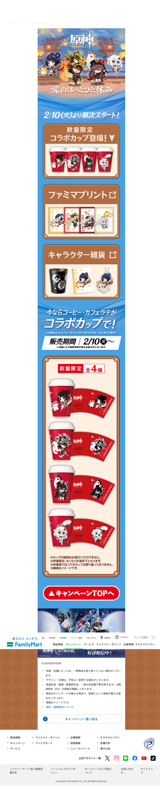 ファミリーマート 原神 旅のほっとひと休み ファミリーマート X Facebook はてブ Pocket LINE コピー 2026.02.12 otoku-family.site/archives/1270/