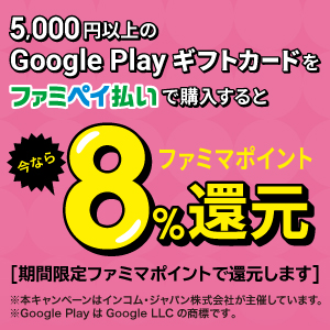 ファミリーマート 【ファミリーマート限定】Google Play ギフトカード8%還元キャンペーン♪ ファミリーマート X Facebook はてブ Pocket LINE コピー 2026.02.12 otoku-family.site/archives/1282/