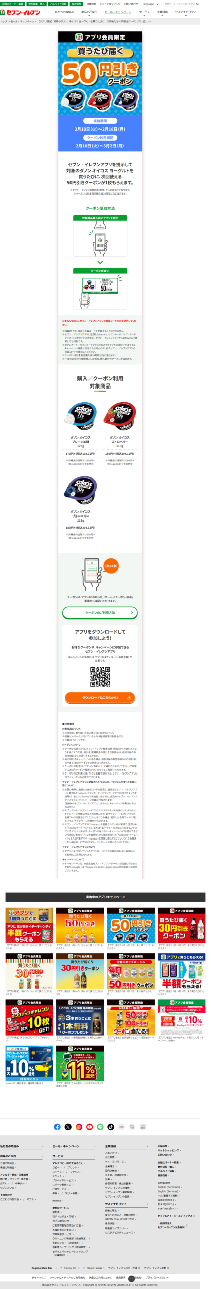 セブンイレブン 【アプリ限定】2月16日(月)まで買うたびにもらえる! セブンイレブン X Facebook はてブ Pocket LINE コピー 2026.02.12 otoku-family.site/archives/1310/