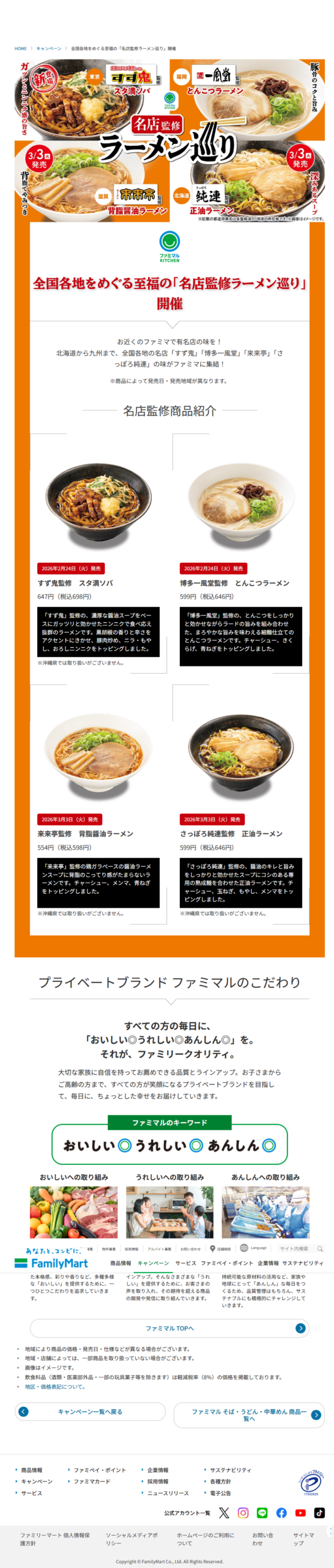 ファミリーマート 全国各地をめぐる至福の「名店監修ラーメン巡り」開催 ファミリーマート X Facebook はてブ Pocket LINE コピー 2026.02.28 #ファミリーマート otoku-family.site/archives/1420/