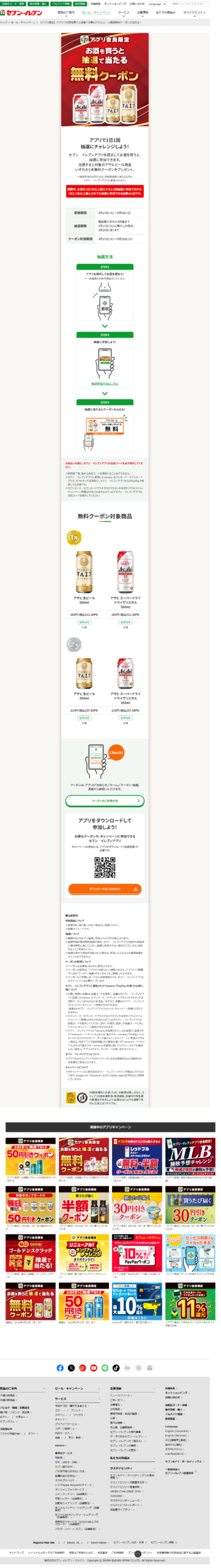 セブンイレブン 【アプリ限定】お酒購入でビール無料クーポンが当たる! セブンイレブン X Facebook はてブ Pocket LINE コピー 2026.03.18 #セブンイレブン otoku-family.site/archives/1649/