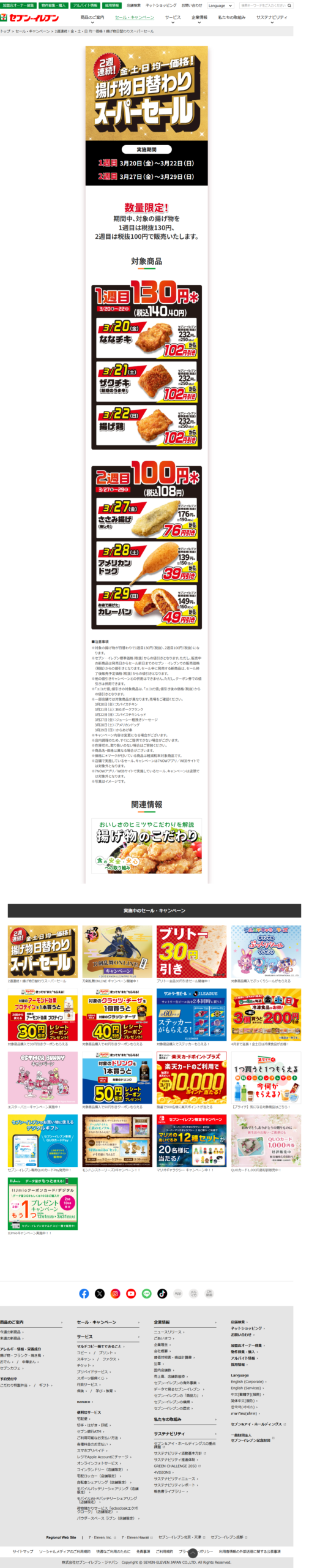 セブンイレブン 2週連続!揚げ物日替わりスーパーセール セブンイレブン X Facebook はてブ Pocket LINE コピー 2026.03.20 #セブンイレブン otoku-family.site/archives/1669/