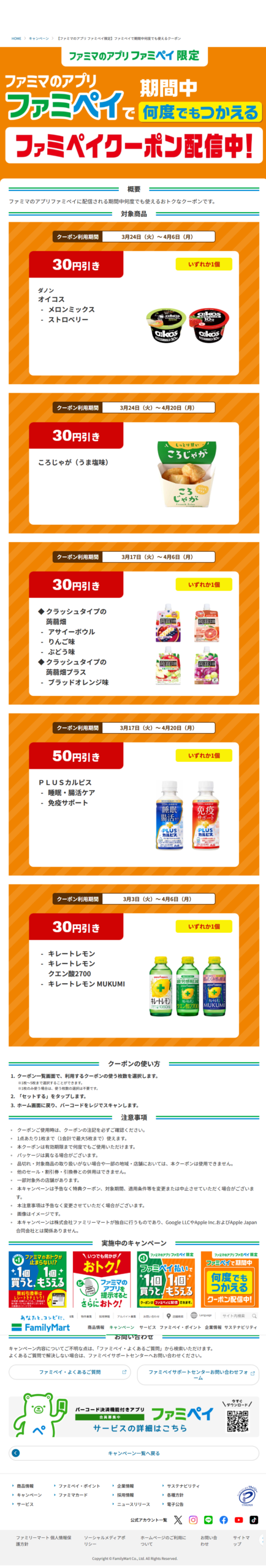 ファミリーマート 【ファミマのアプリ ファミペイ限定】ファミペイで期間中何度でも使えるクーポン ファミリーマート X Facebook はてブ Pocket LINE コピー 2026.04.01 #ファミリーマート otoku-family.site/archives/1766/